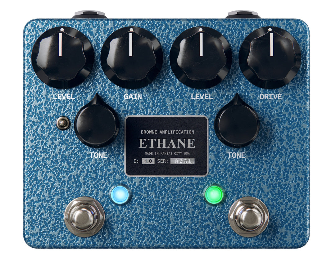 Built for players who demand the best, the Ethane Dual Overdrive fuses two of Browne Amplification’s most revered circuits—the Carbon V2 and the Gritador—into one expertly crafted pedal. Designed in Kansas City, the Ethane delivers unmatched versatility, road-ready durability, and inspiring tone.