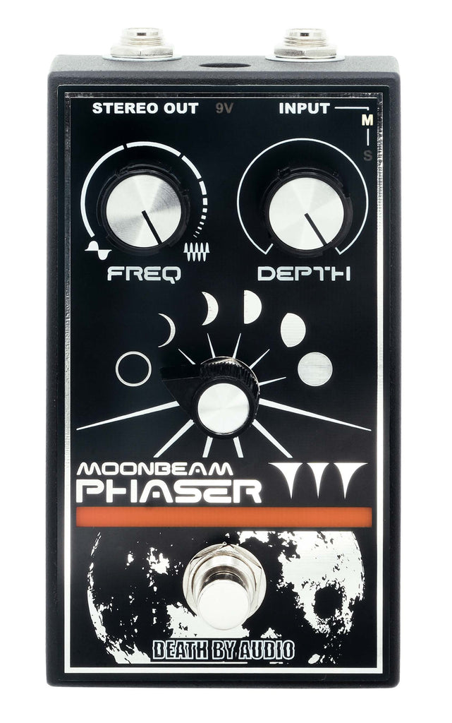 The Moonbeam Phaser features TRS stereo input and output for mono or stereo operation.