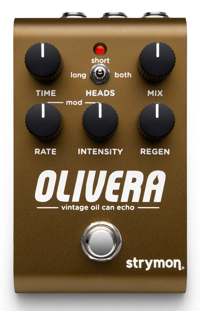 The first oil can echoes were made by the Tel-Rey company in 1959, achieving the repeats using a small rotating can filled with conductive oil as the dielectric material instead of tape.This novel approach yields very different sounds than what you would hear from a tape machine, and the results instantly transport the listener to a darker and murkier place that positively oozes vibe. The sheer number of variables in the design made authentic emulation challenging, requiring a ton of research and a brand new algorithm to get to the realism that we set out to achieve. We feel confident that Olivera captures the true soul of the original units, from the dark repeats with unique rhythmic and decay characteristics to the unreal thick modulation that changes and morphs as the audio does. No other type of delay can do what an oil can does, and no other pedal emulation comes close to Olivera.